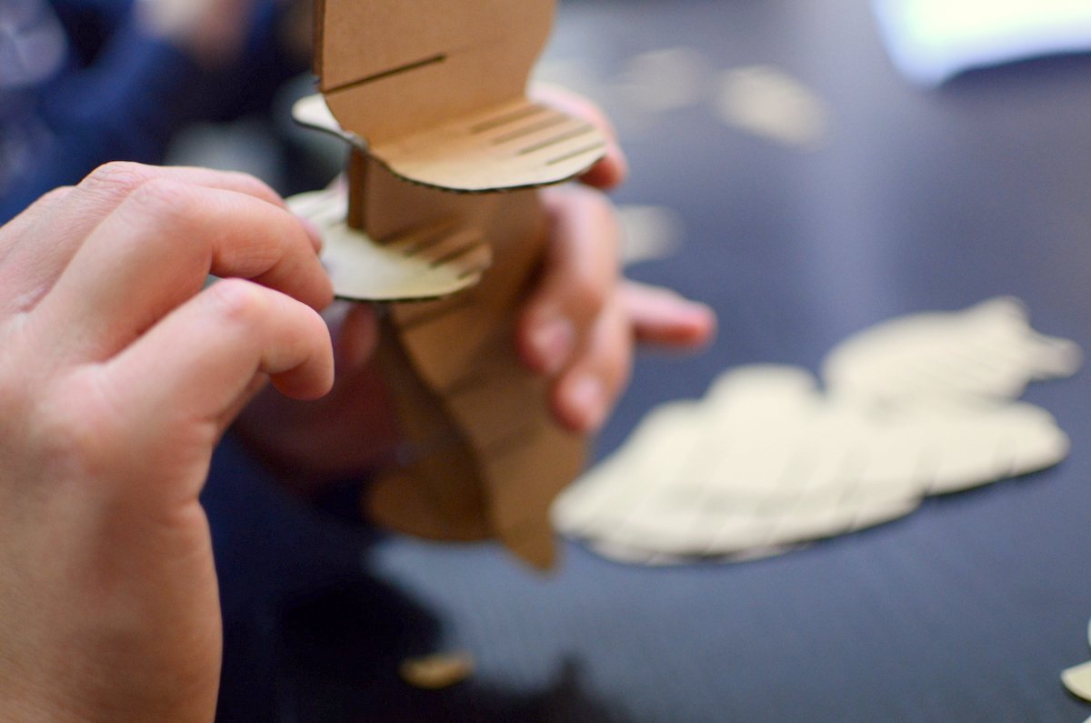 Die Kinder haben wunderschöne Motive in Inkscape entworfen und gelasert und einen tollen Fuchs aus 123dmake zusammen gebaut. Mit dem Fuchsbau war der Einstieg nicht leicht, aber die Kinder haben sich schlau gemacht und alle hatten am Ende ein Erfolgserlebnis. Zum nächsten Kurs ist es nicht mehr soweit und weitere spannende Figuren warten auf euch.